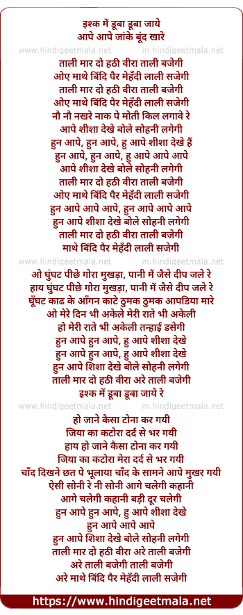 Lyrics of Talli Maar Do Hathi Veera (Solo) - इश्क में डूबा डूबा जाये