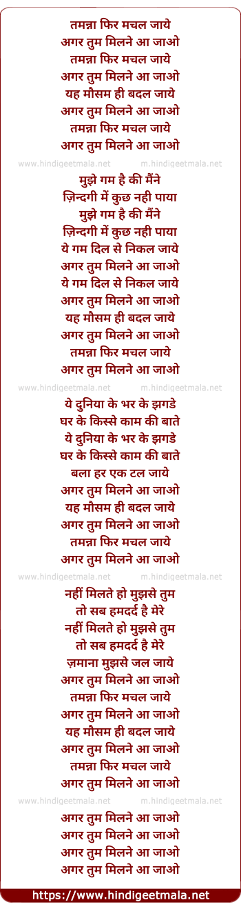 Lyrics of Tamanna Phir Machal Jaaye - तमन्ना फिर मचल जाए