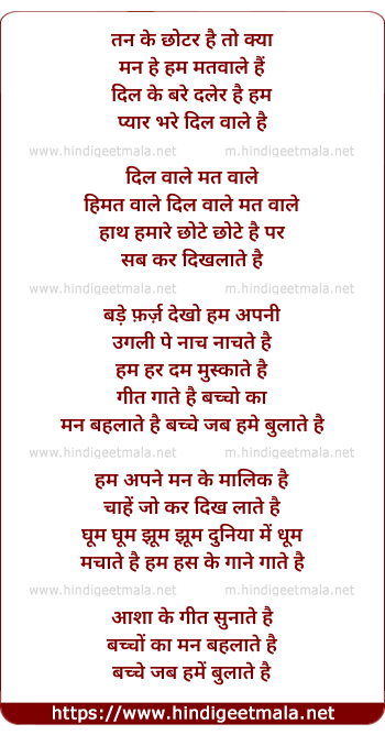 Lyrics of Tan Ke Chhoter Hai To Kya - तन के छोटर है तो क्या