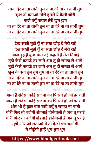 Lyrics of Tana Dere Na Tani Tum - ताना देरे ना तानी तुम
