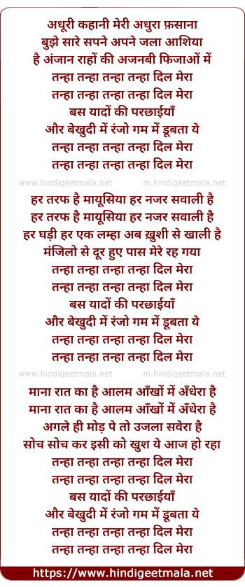 tanha tanha tanha tanha dil mera