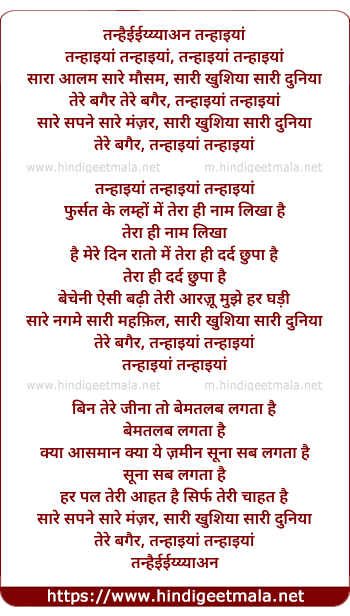 tanhaiyyan tanhaiyyan, tanhaiyyan tanhaiyyan