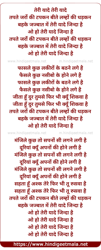 Lyrics of Tapte Jarro Kee Tadpan - तेरी यादे तेरी यादे