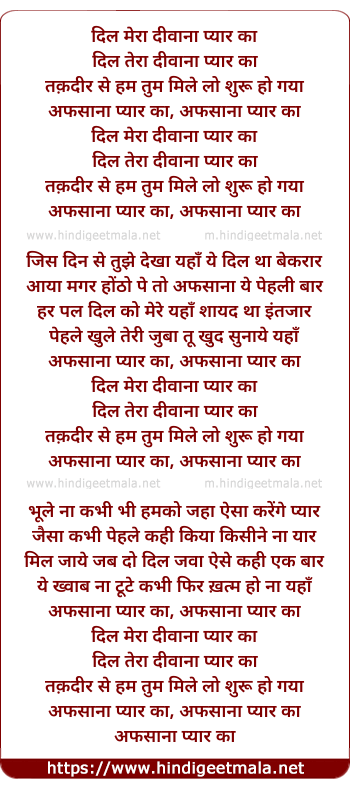 Lyrics of Taqdeer Se Hum Tum Mile, Lo Suru Ho Gaya, Afsana Pyar Ka - तक़दीर से हम तुम मिले, लो सुरु हो गया, अफसाना प्यार का
