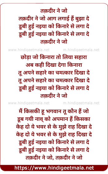 Lyrics of Taqdir Ne Jo Aag Lagayi Hai - तक़दीर ने जो
