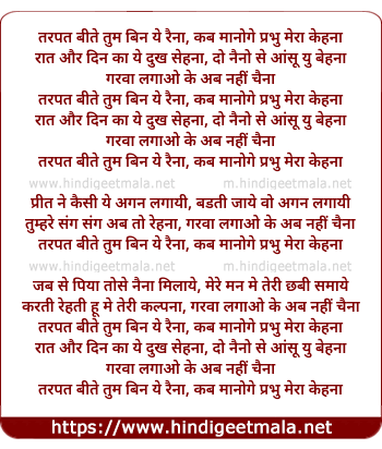 Lyrics of Tarpat Beete Tum Bin Ye Raina - तरपत बीते तुम बिन ये रैना