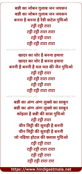 Lyrics of Tatai Tatai Ta Ta - ताते ताते ता ता