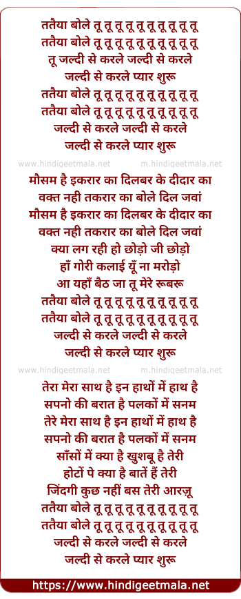 Lyrics of Tataiya Bole Tu Tu Tu - ततैया बोले तू तू तू