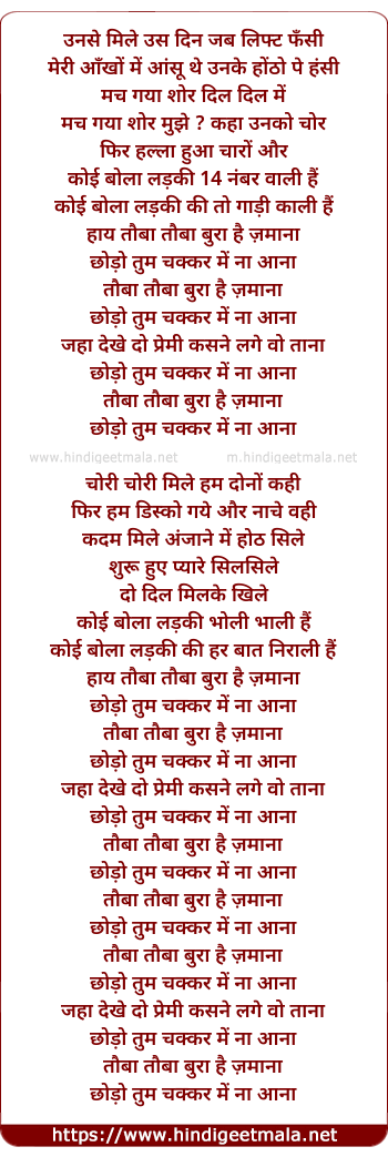 Lyrics of Taubaa Tauba - उनसे मिले उस दिन जब लिफ्ट फँसी
