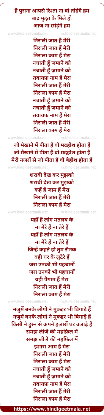 Lyrics of Tawaif Naam Hai Mera - तवायफ़ नाम हैं मेरा