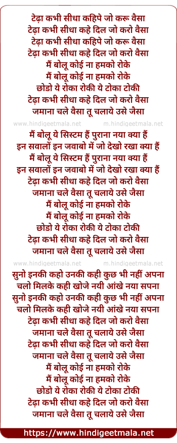Lyrics of Tedha Kabhi Sidha - टेढ़ा कभी सीधा
