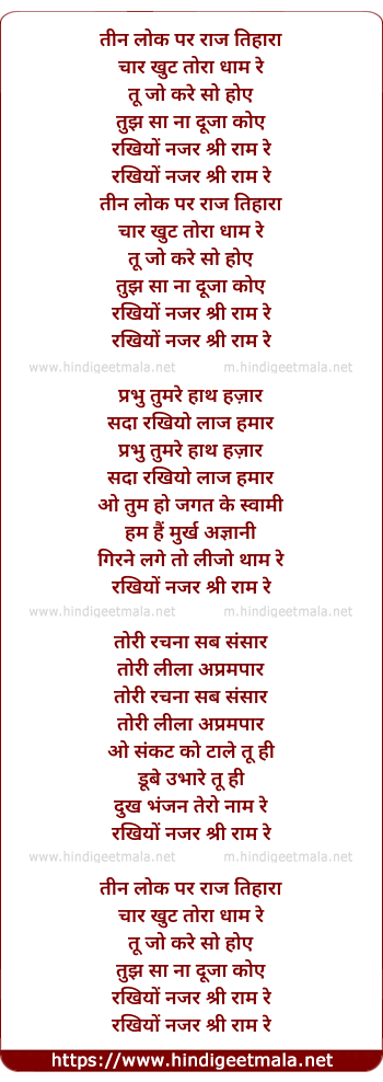 Lyrics of Teen Lok Par Raj Tihara - तीन लोक पर राज तिहारा