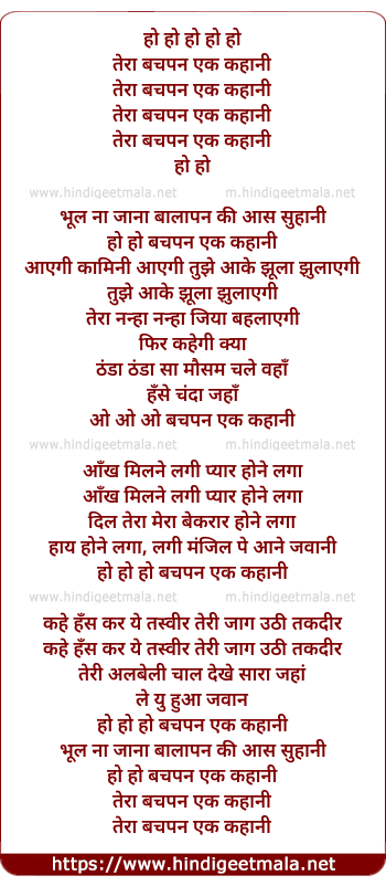 Lyrics of Tera Bachpan Ek Kahani - तेरा बचपन एक कहानी
