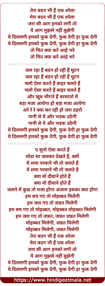 Tera Badan Bhi Hai Ek Shola, Mera Badan Bhi Hai Ek Shola - तेरा बदन भी हैं एक शोला, मेरा बदन भी हैं एक शोला