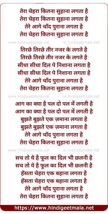 Lyrics of Tera Chehraa - तेरा चेहरा कितना सुहाना लगता है