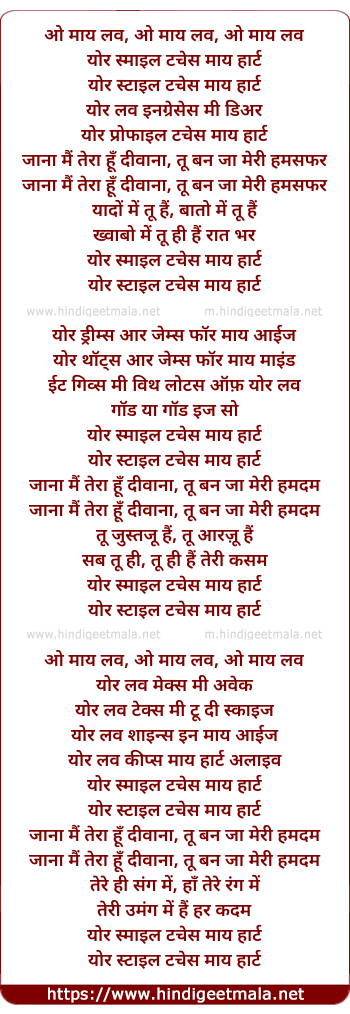 Lyrics of Tera Deewana (Murari) - ओ माय लव, ओ माय लव, ओ माय लव