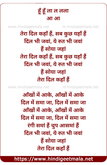 Lyrics of Tera Dil Kaha Hai Sab Kuchh Yaha Hai - तेरा दिल कहा है सब कुछ यहाँ है
