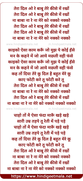 Lyrics of Tera Dil O Re Babu - तेरा दिल ओ रे बाबू