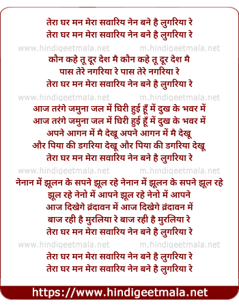 tera ghar man mera sawariya re nean bane lugariya re