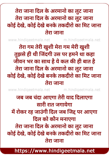 Lyrics of Tera Jaana, Dil Ke Armaano Ka Lut Jaana - तेरा जाना दिल के अरमानो का लुट जाना