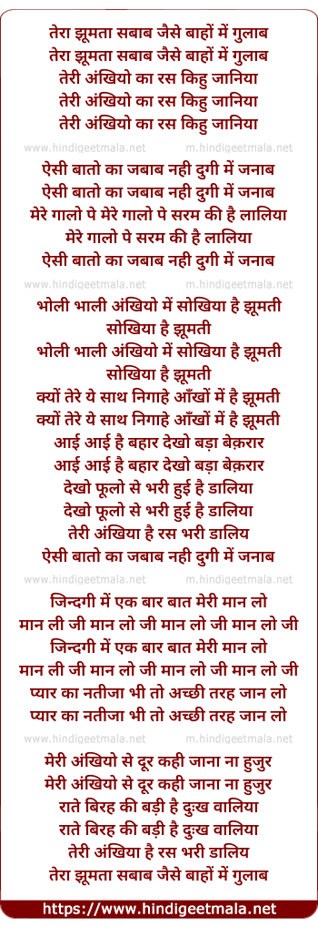 Poetic Translation - Lyrics of Tera Jhumta Shabab Jaise