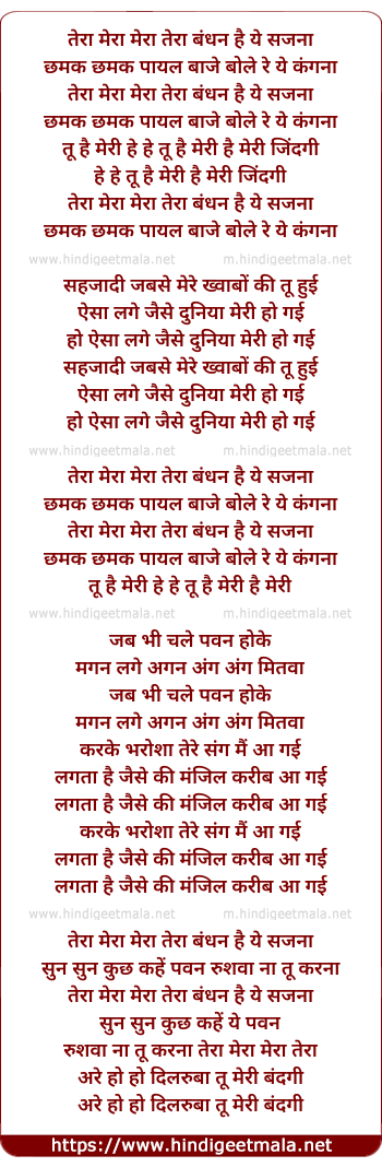 Lyrics of Tera Mera Mera Tera Bandhan - तेरा मेरा मेरा तेरा बंधन
