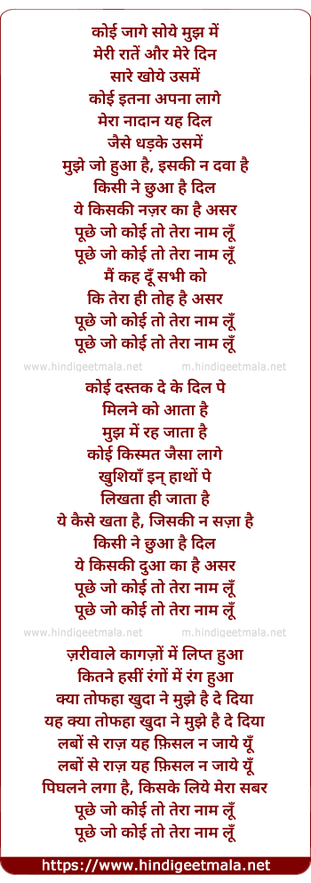 Poetic Translation - Lyrics of Tera Naam Lu - तेरा नाम लूँ