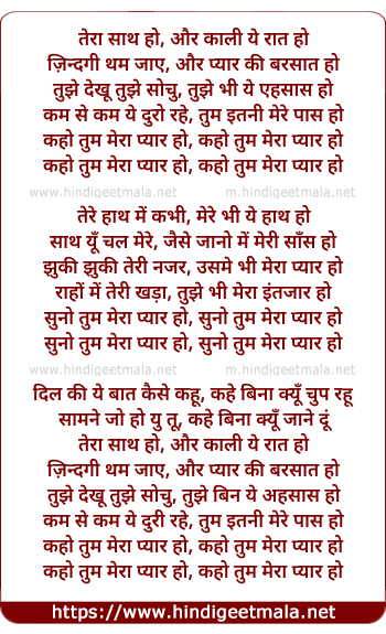 Lyrics of Tera Saath Ho, Aur Kali Ye Rat Ho - तेरा साथ हो, और काली ये रात हो