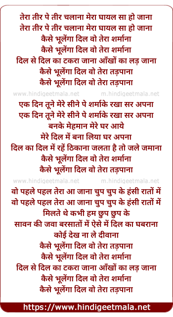 Lyrics of Tera Teer Pe Teer Chalana - तेरा तीर पे तीर चलाना
