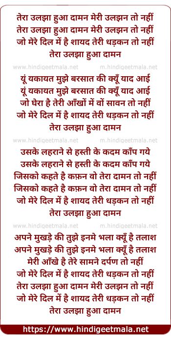 Lyrics of Tera Uljhaa Hua Daaman - तेरा उलझा हुआ दामन मेरी उलझन तो नहीं