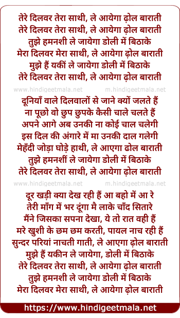 Lyrics of Teraa Dilbar Teraa Saathee - तेरा दिलवर तेरा साथी