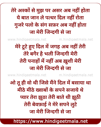 Dil Nahi Rota Guzare Palo Ke Sang Safar Ab Nahi Hota Jaa Meri Zindagi Se