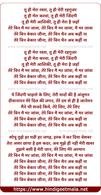 tere bin bekar jina, tere bin chain ab kahi na