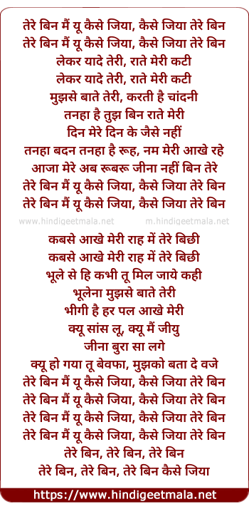 tere bin main yu kaise jiya, kaise jiya tere bin