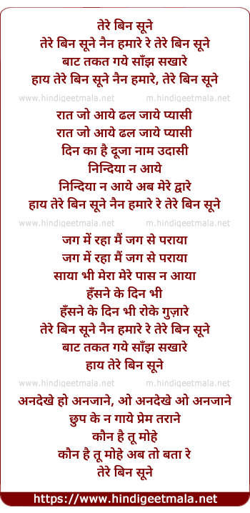 Lyrics of Tere Bin Sune Nain Humare - तेरे बिन सूने नैन हमारे