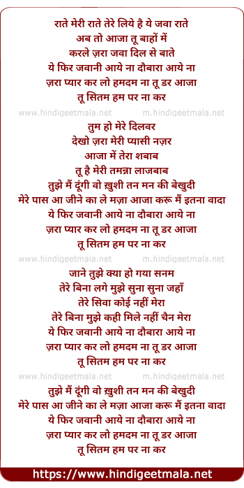 Lyrics of Tere Bina (Alisha Chinai) - राते मेरी राते तेरे लिये है ये जवा राते