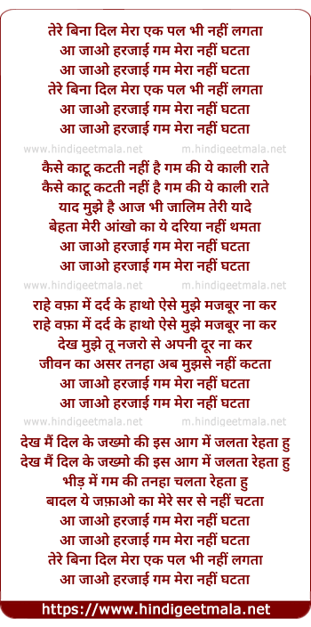 aa jaa o harjai gam mera nahi ghatata