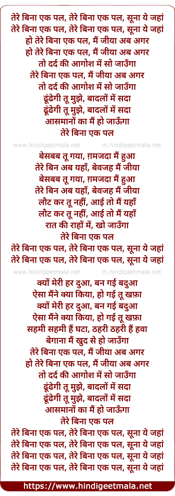 Tere Bina Ek Pal - तेरे बिना एक पल, तेरे बिना एक पल, सूना ये जहां