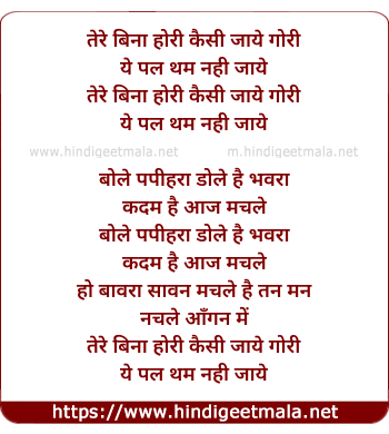 Lyrics of Tere Bina Hori - तेरे बिना होरी