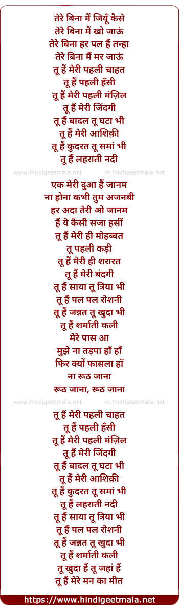 Lyrics of Tere Bina Mai Jiu Aise - तेरे बिना मैं जियूँ कैसे