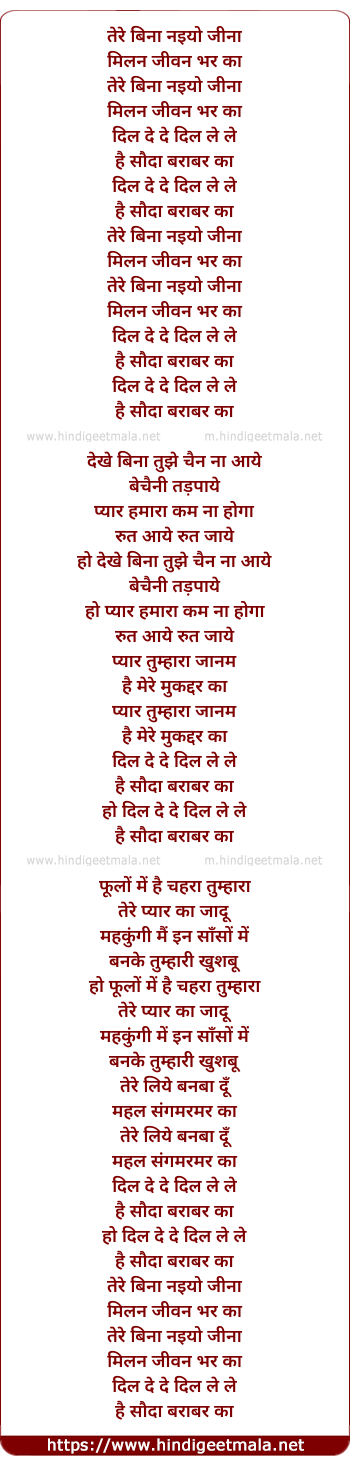 Lyrics of Tere Bina Naiyo Jeena - तेरे बिना नइयो जीना