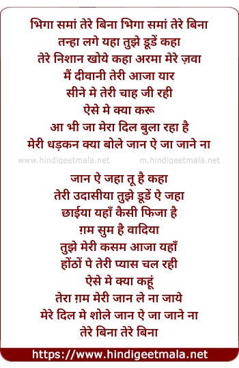 bhiga sama tere bina