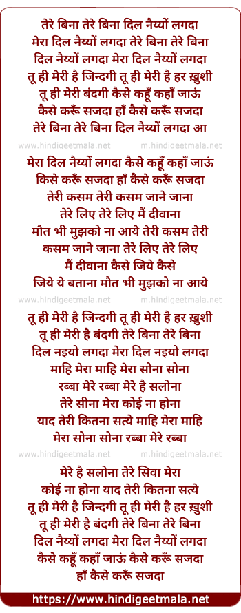 mera dil naiyyo lagda tere bina tere bina