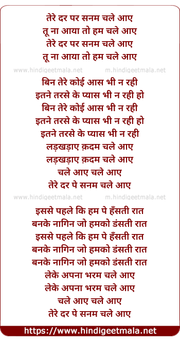 Lyrics of Tere Dar Par Sanam Chale Aaye Tu - तेरे दर पर सनम चले आये तू