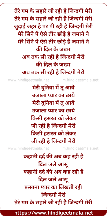 Lyrics of Tere Gam Ke Sahare Ji Rahi Hai Zindagi - तेरे गम के सहारे जी रही है जिन्दगी मेरी
