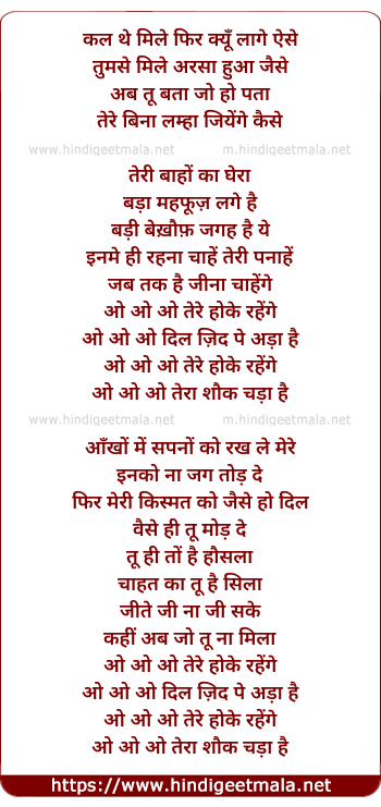o o o dil zid pe adaa hai