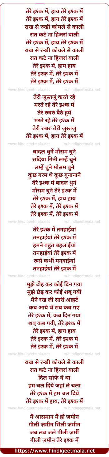 Lyrics of Tere Ishq Me - तेरे इश्क में, हाय तेरे इश्क में