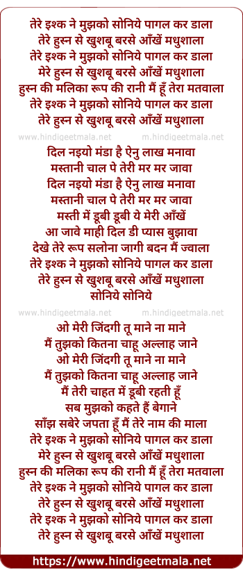 tere ishq ne mujhko soniye paagal kar daala