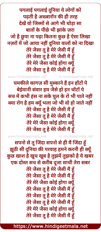 tere jaisa tu hai mere jaisi mai hun