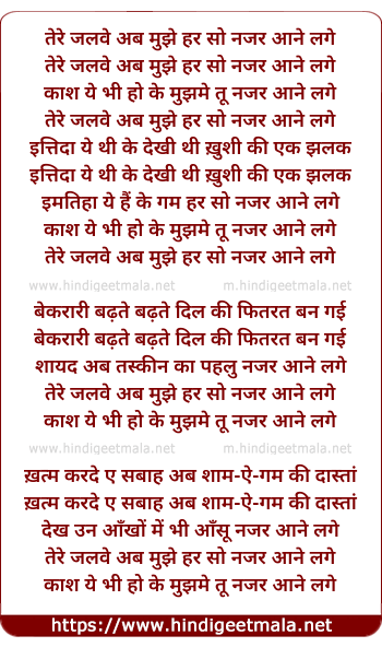 Lyrics of Tere Jalwe Abb Mujhe - तेरे जलवे अब मुझे हर सो नजर आने लगे